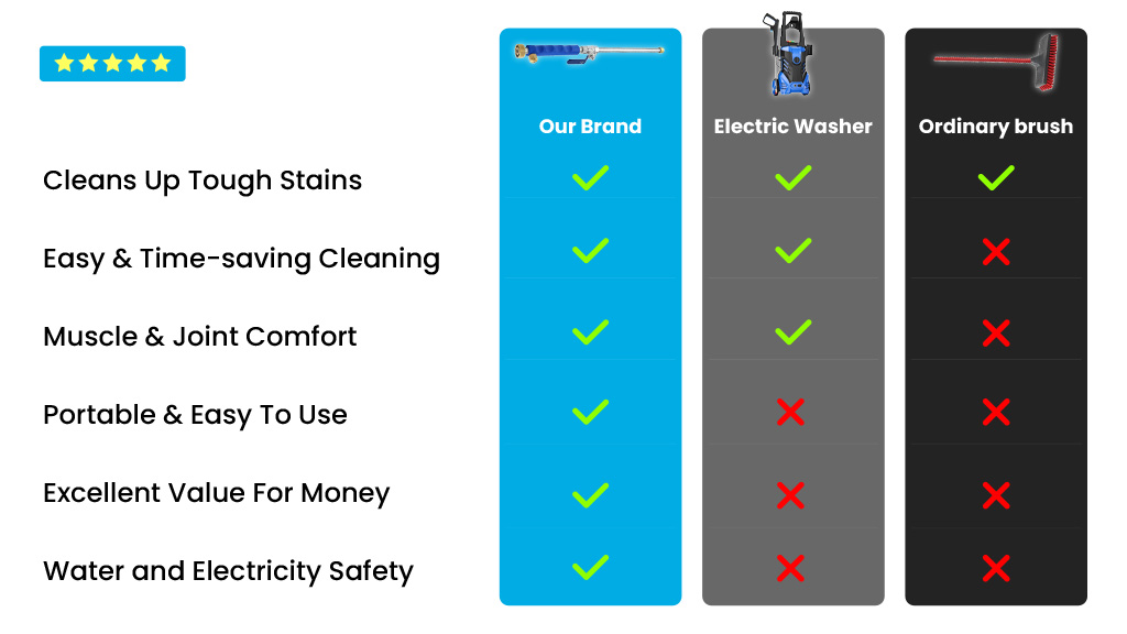 ● More Affordable Price: Compared to those electric power pressure washers, we can do almost the same cleaning results, but at a tenth of the price of those products!